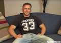 Dante played baseball in high school which makes sense with a bat like his swinging bettween his legs to practice with all the time. He lubes it up, shows it off for the camera, and rubs out a creamy load all over his hand.