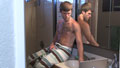 Cameras set up in the bathroom, I let him go at it. Cy is one of those guys who's turned on by being watched a little more than the average guy, so he spent a some time eyeballing the lenses pointed at him, clearly enjoying himself.